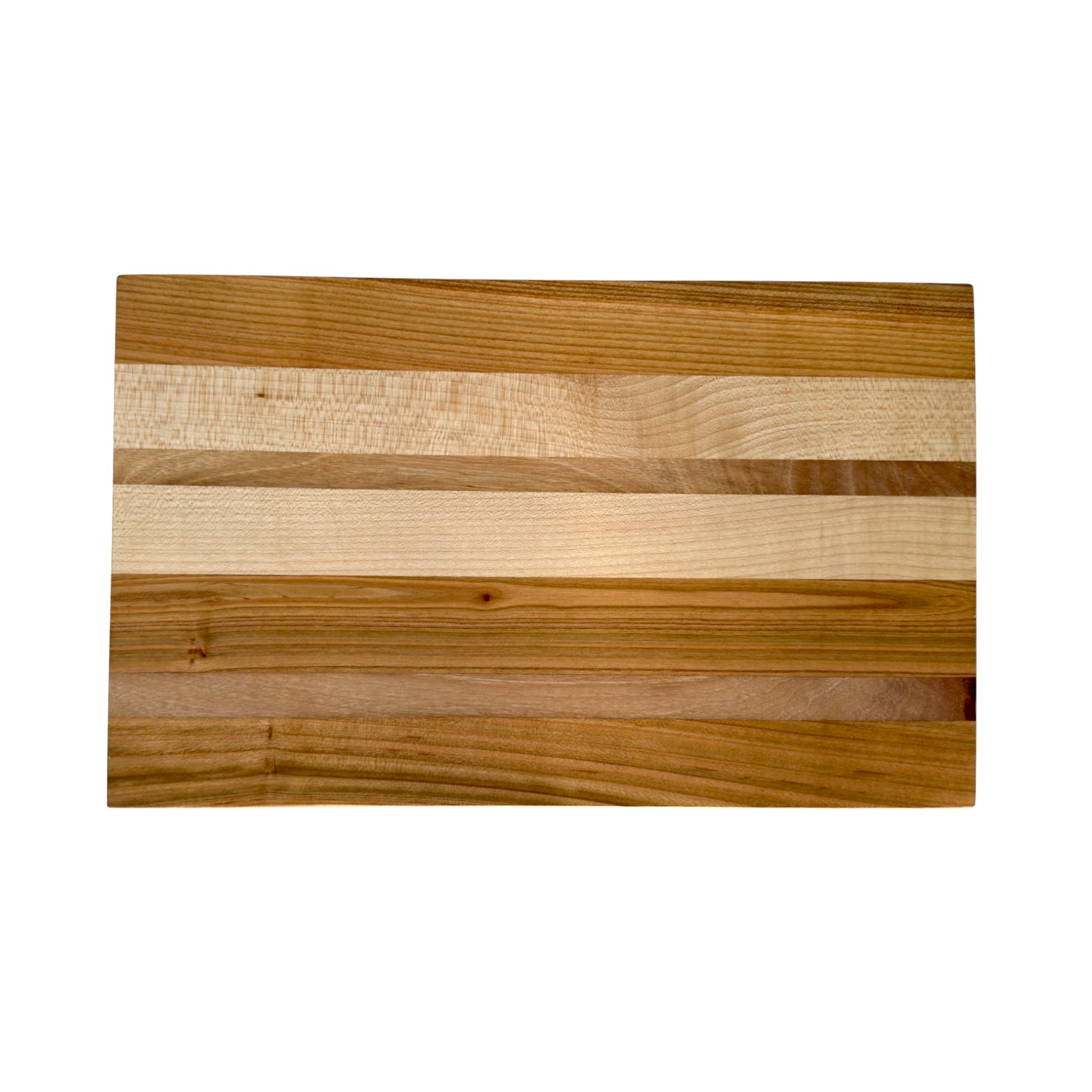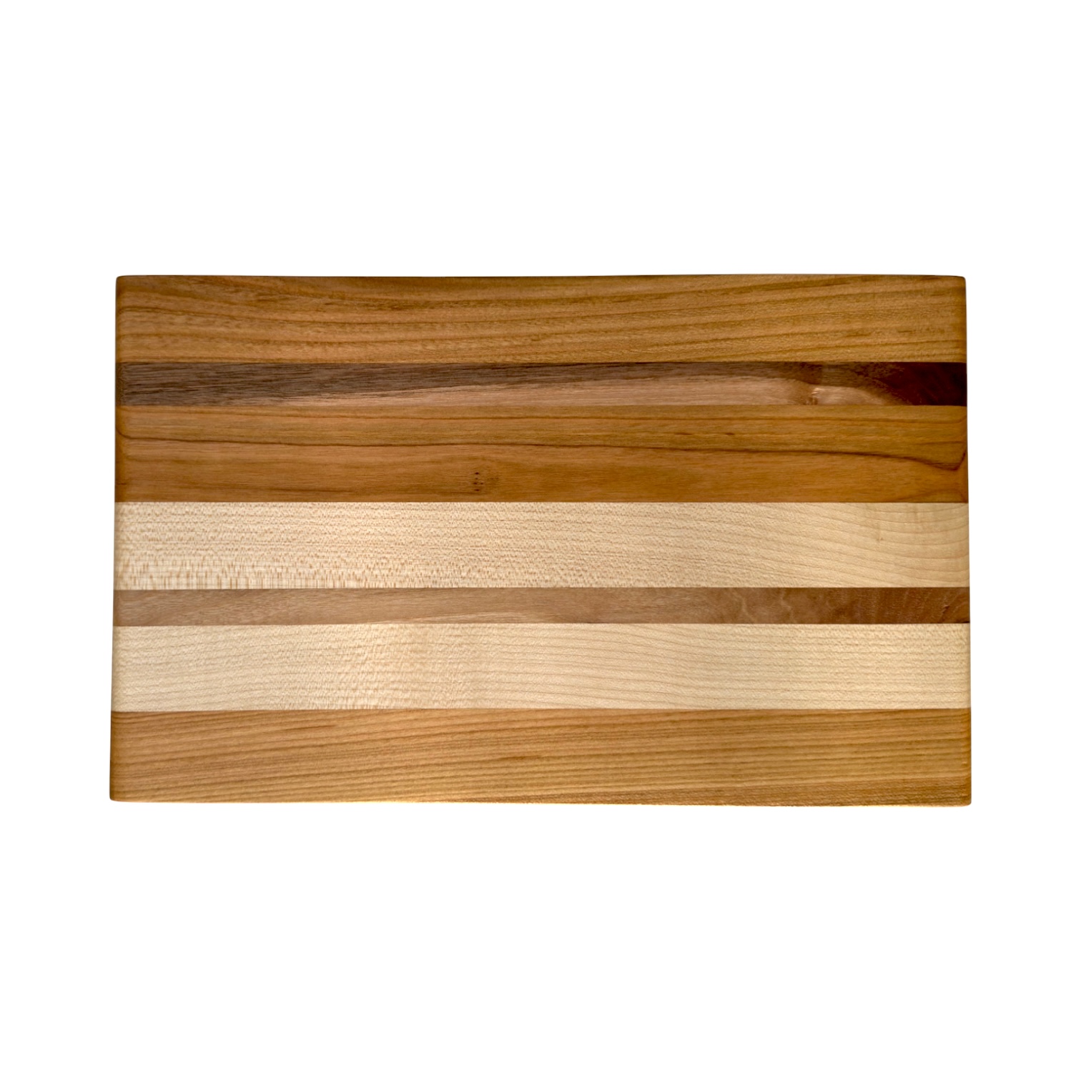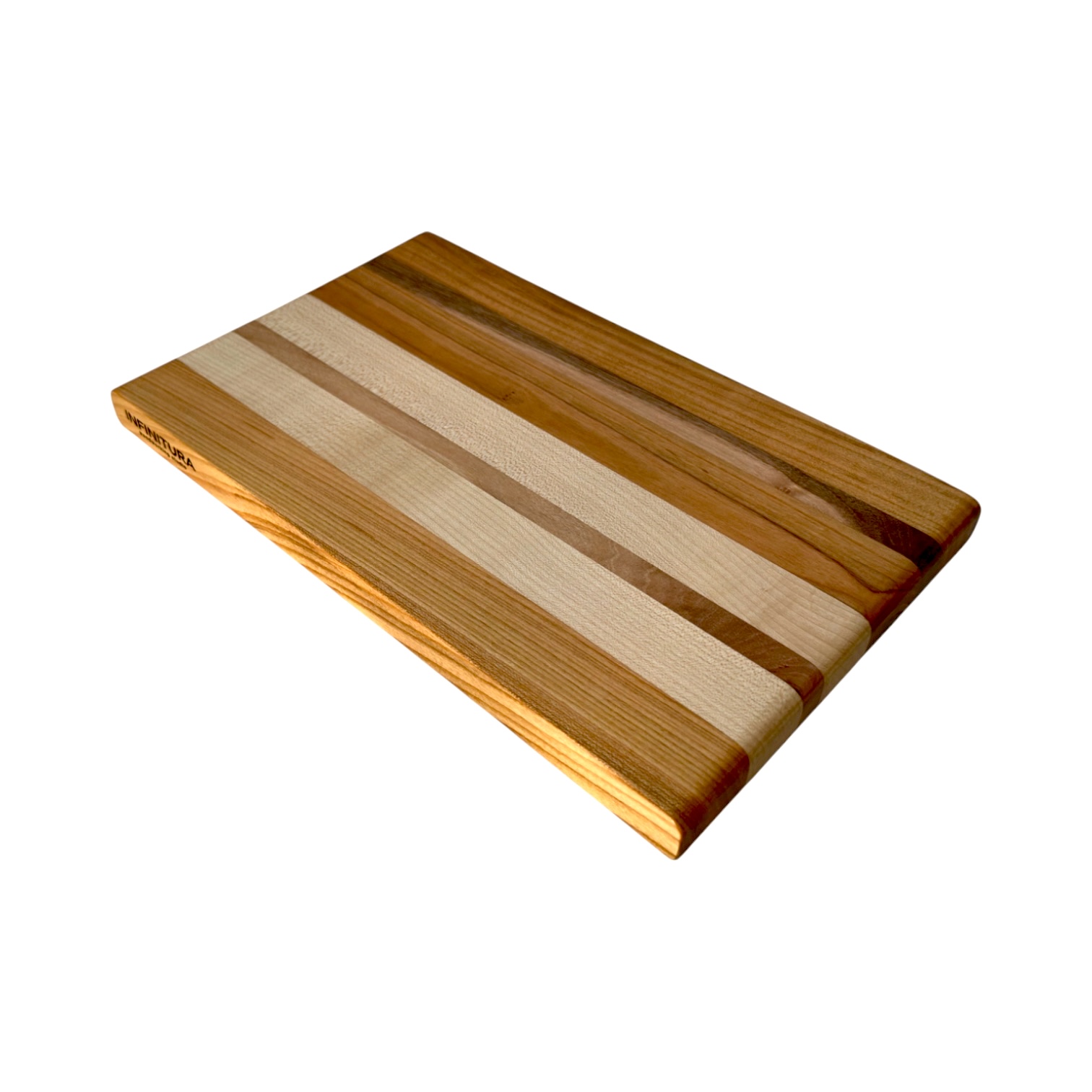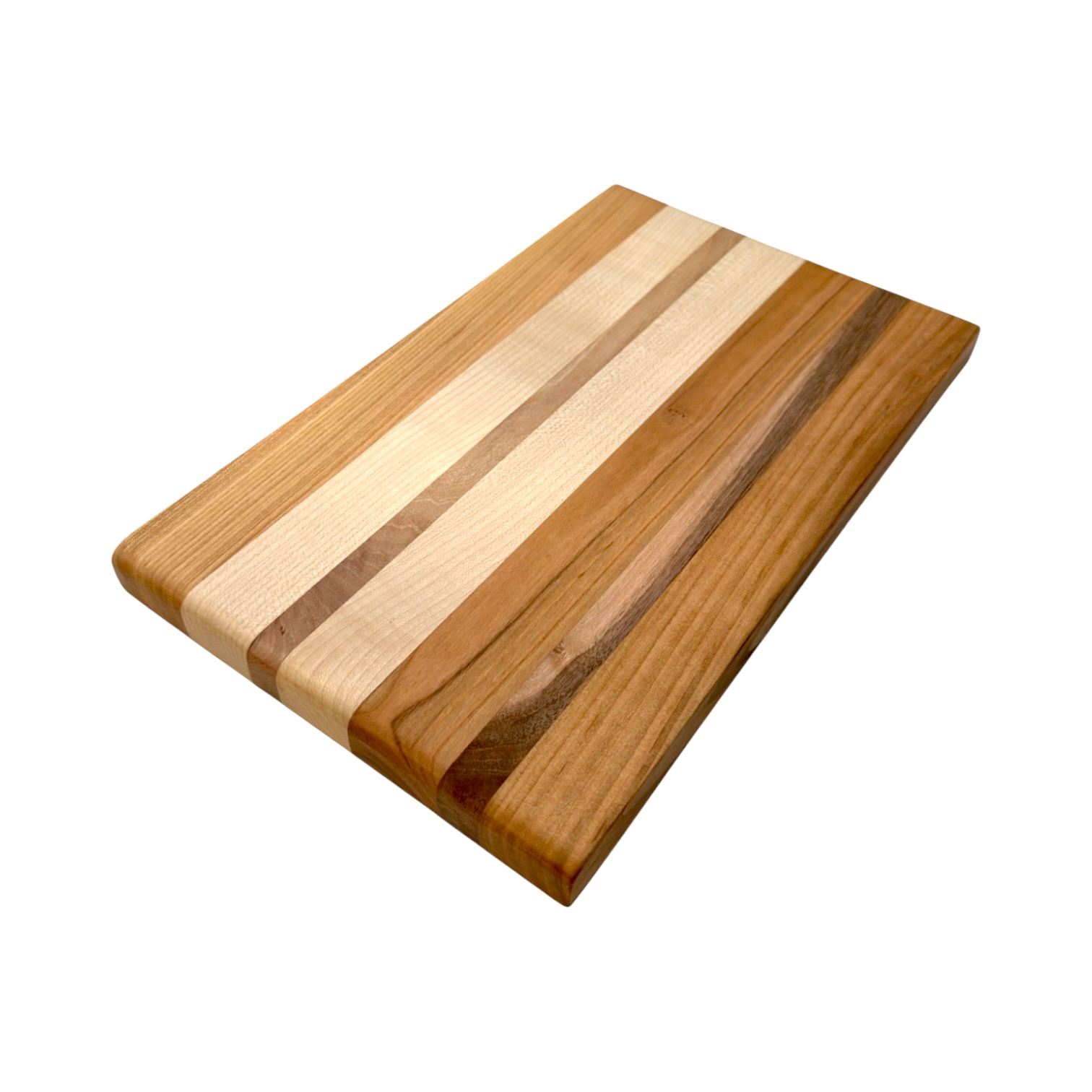 Un tocător edge-grain realizat manual din cireș, arțar și nuc autohton, cu un design curat și linii naturale inspirate din texturile fine ale nisipului.